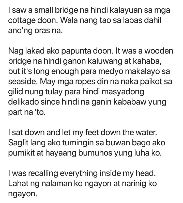 Doon naging malikot ang mga isip namin ni Jared. Sa ilalim ng malaking puno may isang batang babae na nakaupo doon at pinapanood ang mga kabataang masayang nagtatawanan at. Mga sikretong ibinulong na lamang sa hangin at tinanggap na ng panahon na bahagi lamang o itinuring na ilusyon.