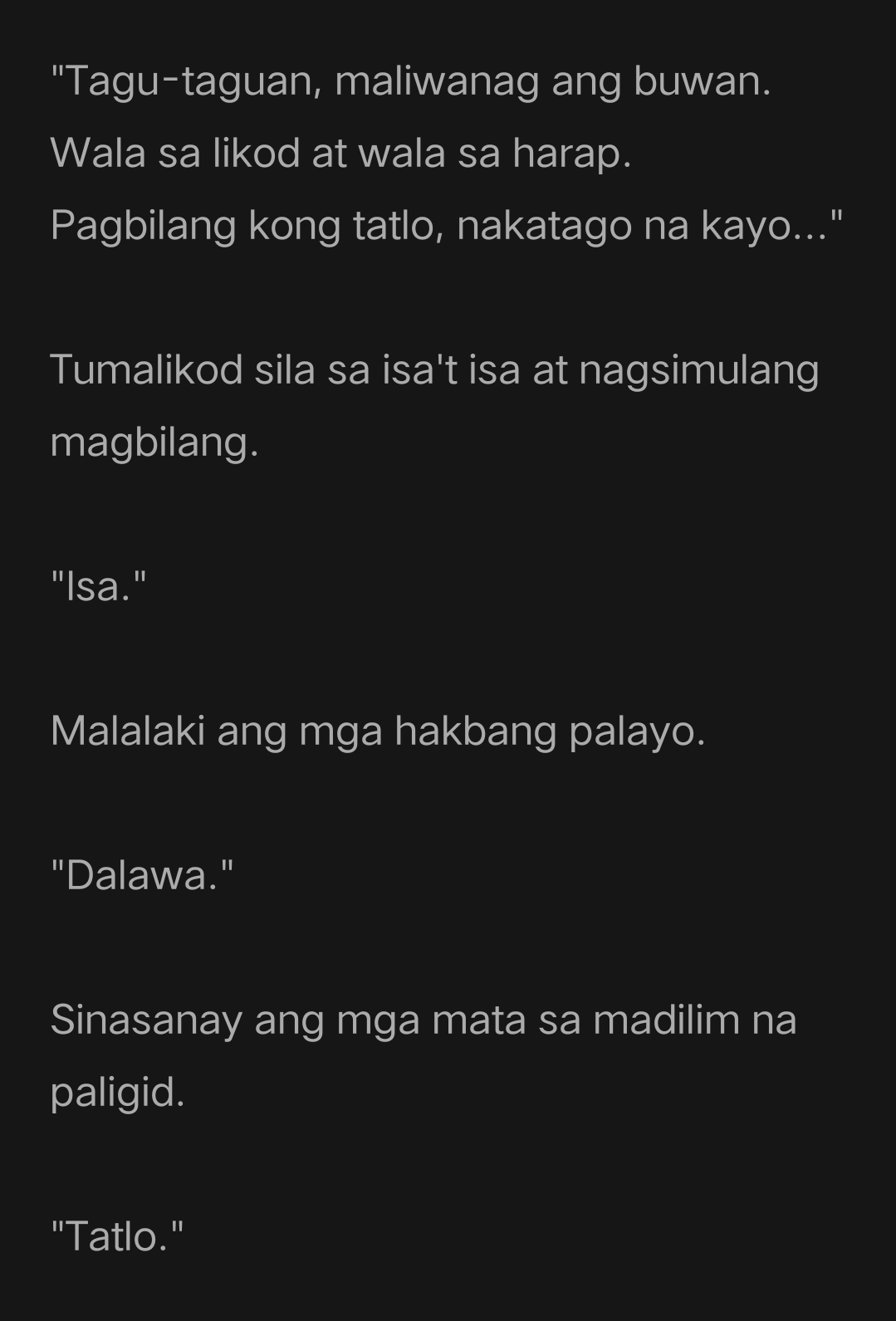 Wala kasi itong katandaan. Thanks to Manuel Viloria for letting us post his recording of Isa Dalawa Tatlo from his podcast about counting in Tagalog. Philippines Tagalog title alternative title Magtago na kayo.
